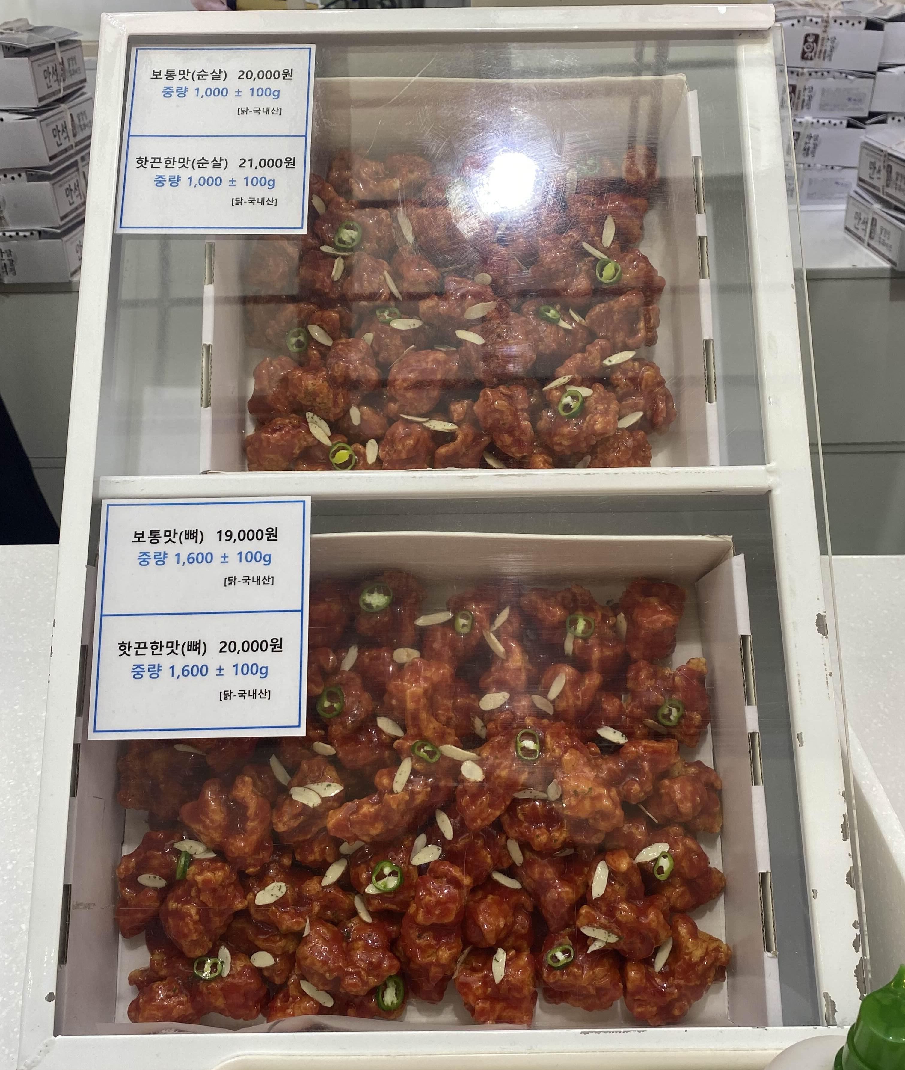여쭤보니 닭가슴살과 닭다리살이 고루 섞인 순살이라 하셨다