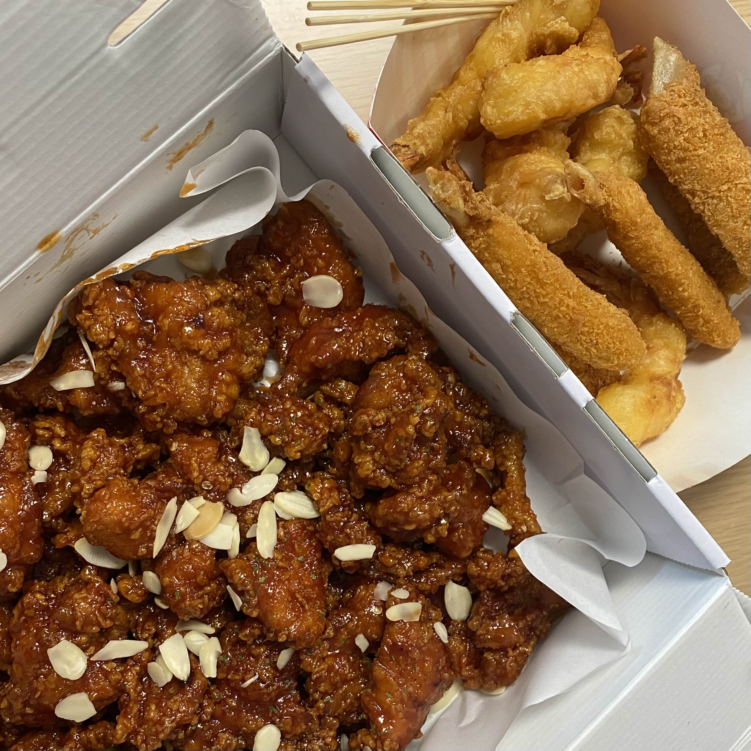 깊은 고민 끝에 새우튀김과 게살튀김 세트로 구매 완료
